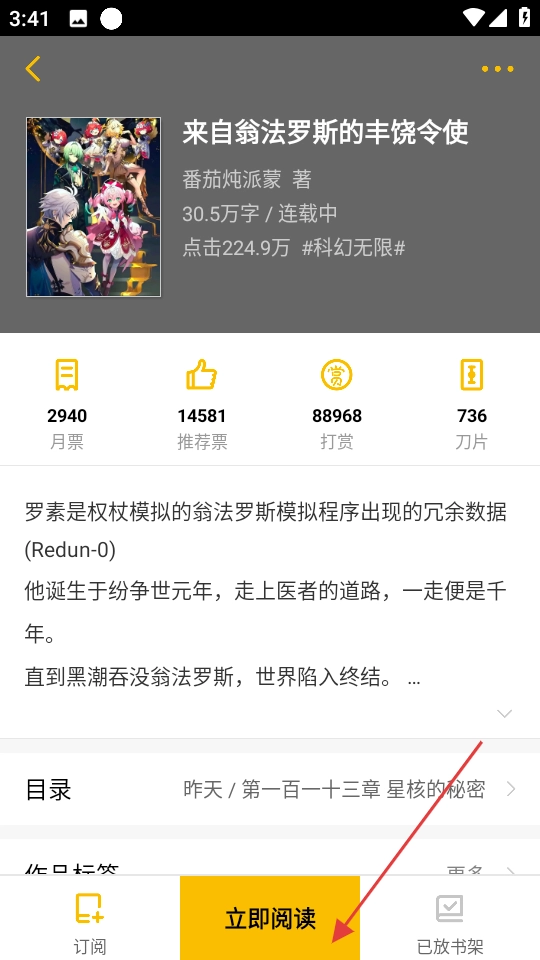 1. 寻找到小说《来自翁法罗斯的丰饶令使》,点击“立即阅读”开启阅读。