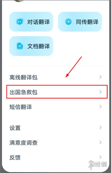 1、打开有道翻译官,点击右上角的图标,进入“我的”页面,选择“出国急救包”功能。