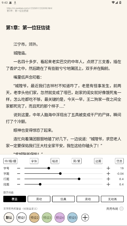 5.可调节字体大小、背景颜色、行间距,支持夜间模式。