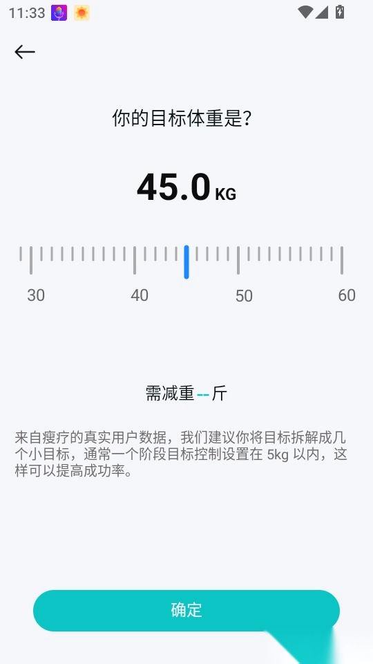 6. 当点击进入“目标体重”功能,大家便能够设定自己的体重目标。