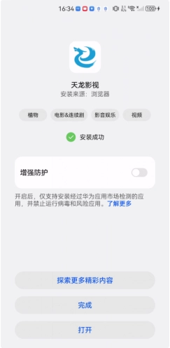 5、最终,出现绿色对号“说明已安装成功”,点击打开,即可体验。