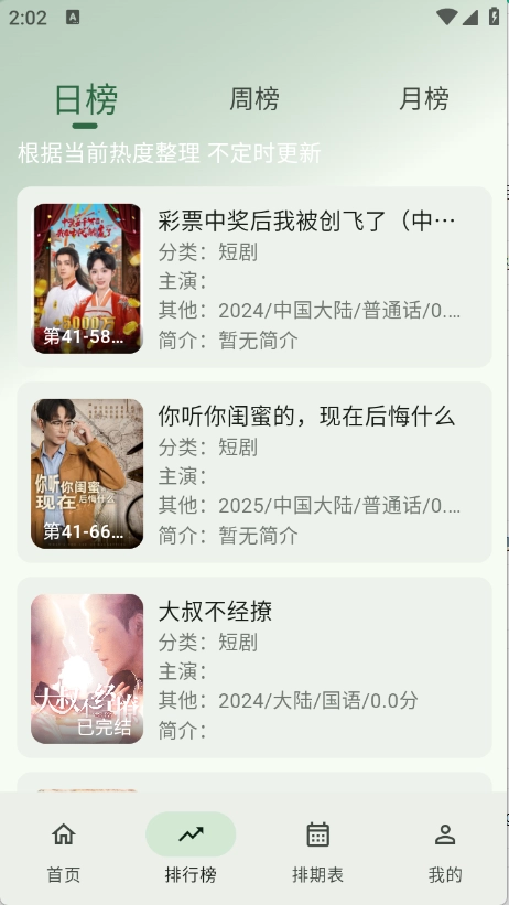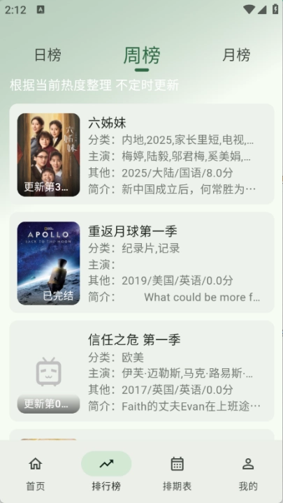 3、排期表提供每天更新的影视情况。