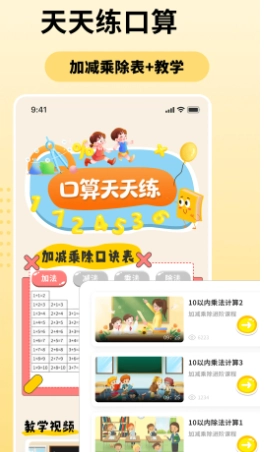 可以使用该应用程序每天为您的孩子智能生成问题,帮助您的孩子练习心算技能。