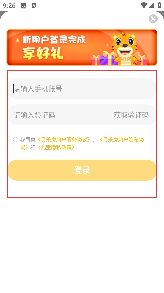 3、在登录界面填手机账号,验证码,同意协议后点登录。