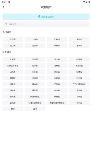 1. 安装完成后进入,你能够自行设定关注哪个城市的天气。