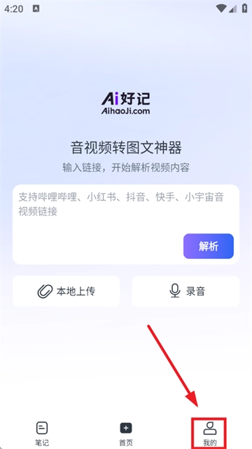 1、首先打开Ai好记app,接着点击右下角“我的”选项;