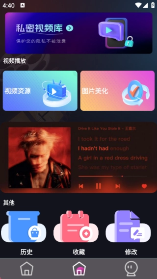 3、在编辑页面中提供了视频私密库,还有视频资源以及图片美化的功能,同时还有其他功能;