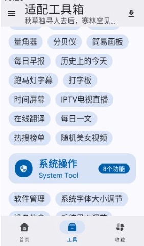 适配工具箱,一款便捷无比的手机工具类软件,涵盖诸多实用功能。像指南针、水平仪、量角器、分贝仪以及在线翻译等,这些于日常生活中虽不常用,却在特定时刻能派上用场的工具,它一应俱全。而且该软件体积精巧,其中各类功能在关键时候,能为我们的生活增添极大的便利。