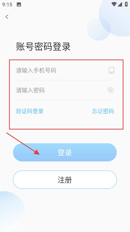 3、填手机号码和密码,点击登录完成操作。