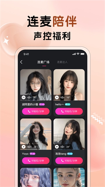 1、连麦广场:在这里能够进行连麦广场连麦,平台上用户众多。只要支付对应的钻石,就能和心仪之人连麦。