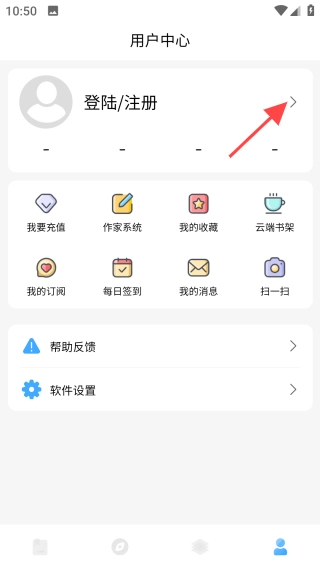 2、开启相关权限,进入用户中心页面,点击【登录/注册】图标。