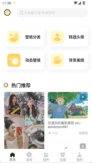 1、快速搜索:在搜索框输入关键词,风格、主题或具体元素,可快速找到想要的壁纸或小组件。