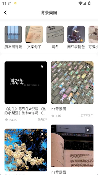 1. 开启后,点击背景美图或者壁纸分类。