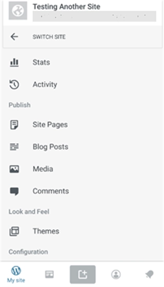 4、您现在可以单击“继续”按钮继续前进并查看应用仪表板,这是您使用移动应用程序管理WordPress网站的地方