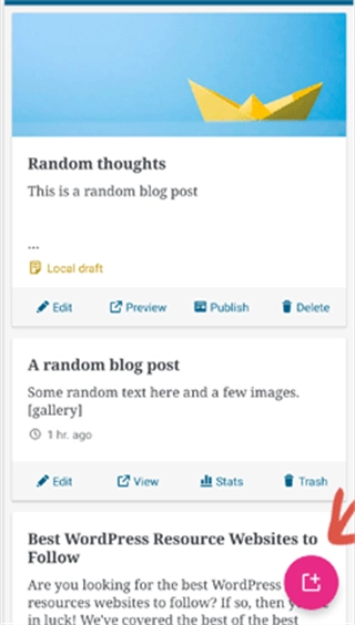 2、可以编辑任何博客文章或点击添加新按钮来创建新的博客文章。这将启动WordPress应用程序的内容编辑器。在这里,您可以使用手机的原生键盘写一个新帖子,底部有一个格式工具栏