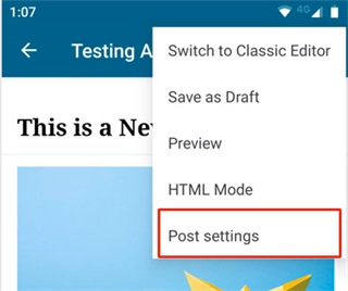 4、该应用程序还允许您更改其他发布选项。要访问这些选项,请点击编辑屏幕右上角的三点菜单,然后选择“发布设置”