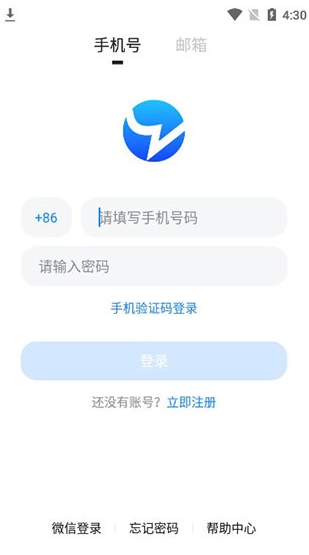 1、在本站并打开blued软件,使用手机号、邮箱进行登录,若没有帐号则需要进行注册再登录;