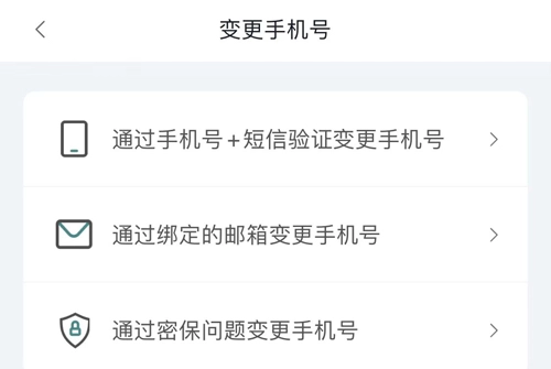 然后我们点击【变更手机号】,可以看到的是有三种不同的方式可以来选择,分别是【通过手机号+短信验证变更手机号】、【通过绑定的邮箱变更手机号】、【通过密保问题变更手机号】,三种不一样的方法,你们可以根据自己的情况来选择。