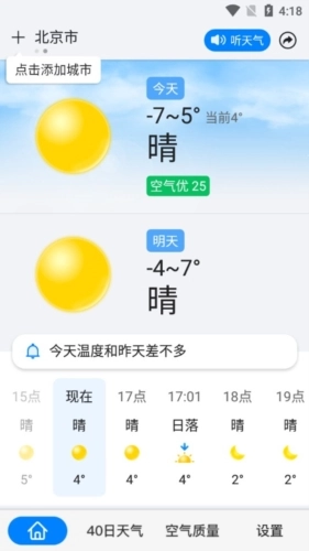 1、点击进入准点天气,点击进入软件,手动添加你想要的城市;