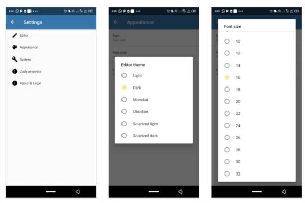 您也可以根据需要自定义开发环境。要更改编辑器的外观,请点击屏幕左上角的三个菜单图标,然后转到“设置”>“外观”以切换到您的首选主题,或者选择其他可用的外观选项。