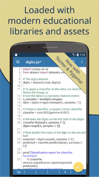 答:说白了,就是让你在安卓手机上写Python代码,啥时候有想法了,掏出手机就能写。