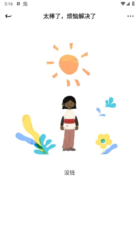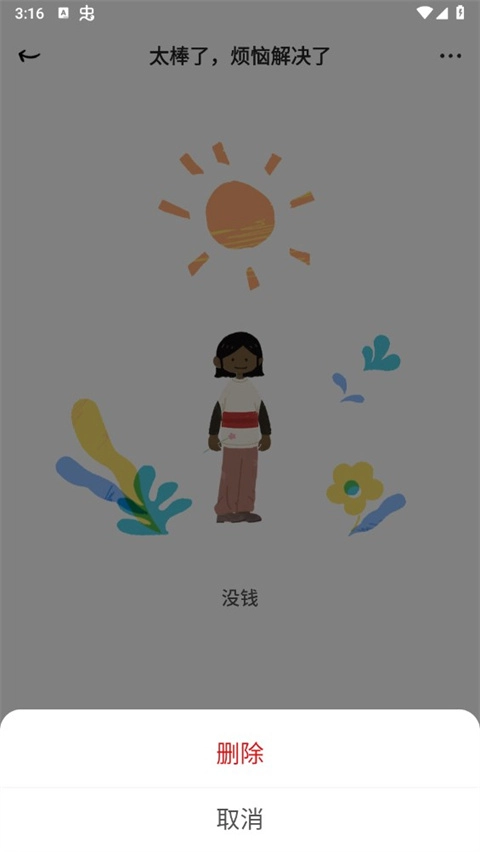 3、左右滑动,选择你已经解决的烦恼,然后点击右上角的三小点;