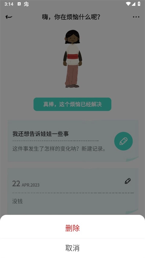 此外,在解忧娃娃中,不同的烦恼对应了不同样子的娃娃,每一个娃娃都会为你保存一份小忧伤。而写下忧愁后,应用并没有止步于此,它的设计还会鼓励你去主动地解决忧虑,然后用积极的心态继续面对生活。当你解决了你的这份忧愁,也可以随时召唤娃娃,告诉它你已经不再为这件事感到烦恼,娃娃会从原来的处于阴霾当中变为笼罩在阳光之下,相信你面对生活会更加有力量。软件内安全私密性十分强大,用户在这可以随心所欲的说出自己心中的种种烦恼,不会泄露关于用户的任何隐私,保证了用户正确释放压力的同时让自己的吐槽更加放心。如果你有着许许多多的烦恼想要诉说,不如把解忧娃娃当成你的秘密树洞吧,也希望你的烦恼能被你一一化解。