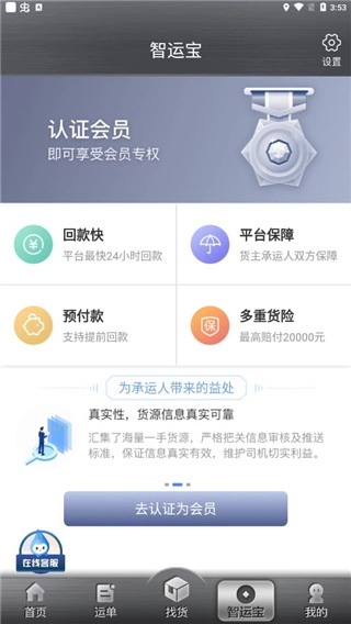 中储智运司机版是一款专门为货车司机打造的在线接单软件。借助这款软件,司机师傅们能够随时随地接单,而且它的接单覆盖范围极为广泛,支持用户所在地周边的各大城市。值得重点提及的是,该软件提供了运费预付、重卡租赁、油品业务、ETC、积分商城、快修保养等服务,这些服务能最大程度地为用户搭建便捷通道。此外,软件还为货主与司机双方配备了抢单、团购、朋友圈、语音服务等多样功能。一方面,能辅助货主制定差异化的发货决策,实现货主与车主点对点交易,去除中间代理环节,保障双方效益的最大化;另一方面,助力承运司机获取线路热门货物的货量预报,提前做好承运准备,切实提供创新性的物流服务与体验。