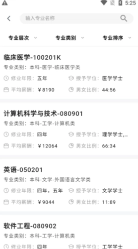 4、点击【专业解读】功能,可以看到根据专业学科类别分类的所有专业;