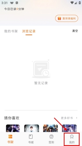 首先用户可以选择在本站书丛网,打开好的应用后点击右下角“我的”页面。