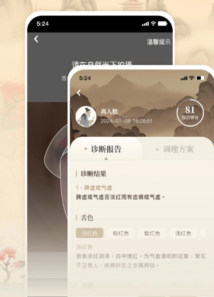 4、用户可以通过AI舌诊功能来获取到智能出具的诊断报告;