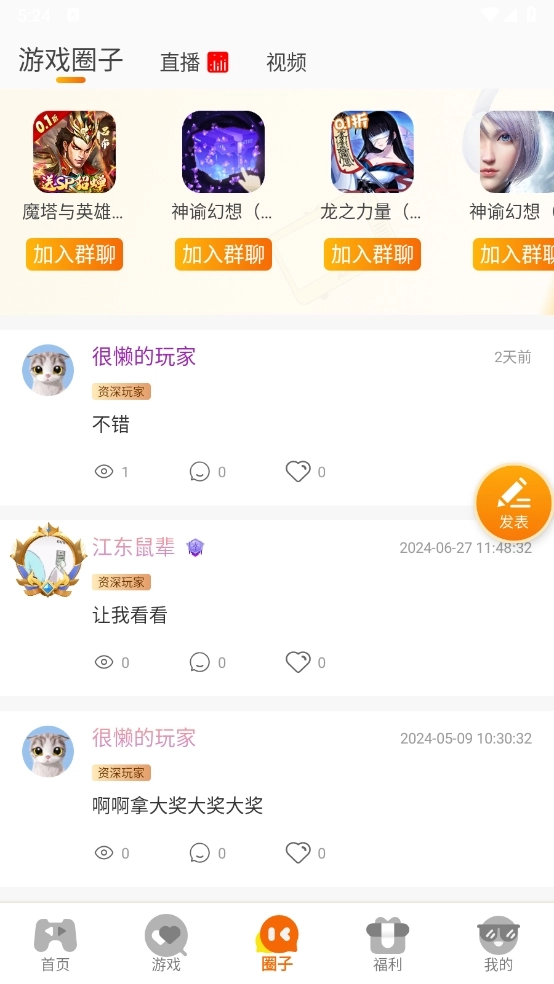 5、在“圈子”板块,可以与其他游戏玩家一起交流玩游戏经验。