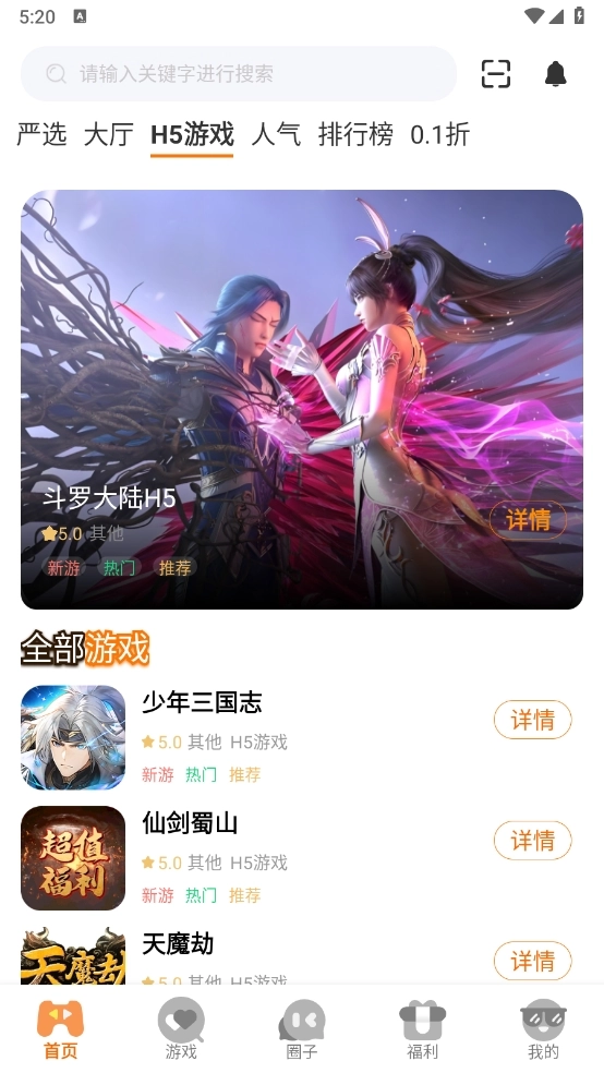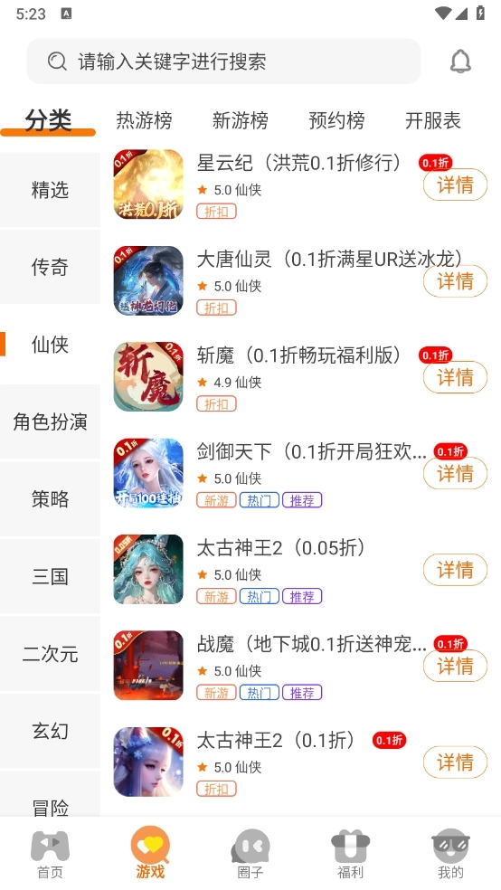 2、在首页以及游戏板块,汇集了海量的游戏资源,包括仙侠、射击以及传奇等。