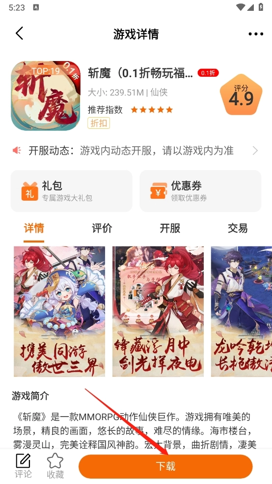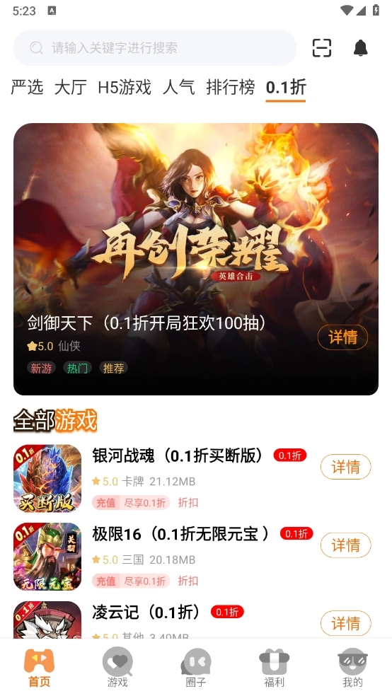 超高福利与折扣游戏:乐猪游App还提供0.1折折扣游戏,以及千款游戏、氪神号、海量福利GM特权号。