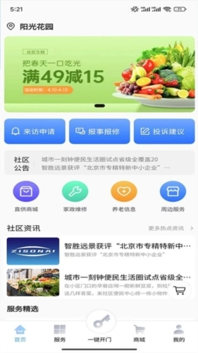 社区功能:使用智之屋接收每一条社区通区,及时了解社区动态。并且可以在上进行报修,还可随时查看维修进程。