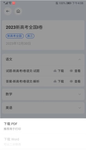 2、可看到全部的试卷资料,选择需要的试卷即可,这里以新高考全国I为例,