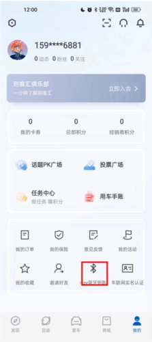 3、进入到我的页面之后,在下面最下方一栏找到“ikey蓝牙钥匙”进入;