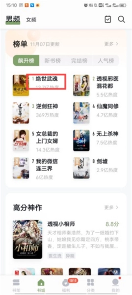 1、进入软件首页,选择你喜欢的小说;