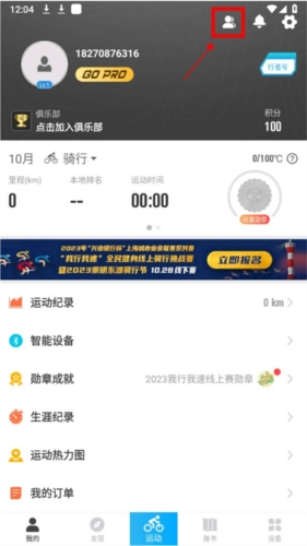 1、在行者骑行我的页面中,点击右上方的好友功能;