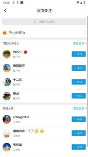 3、可以通过搜索好友昵称、关注、导入微博好友进行添加。