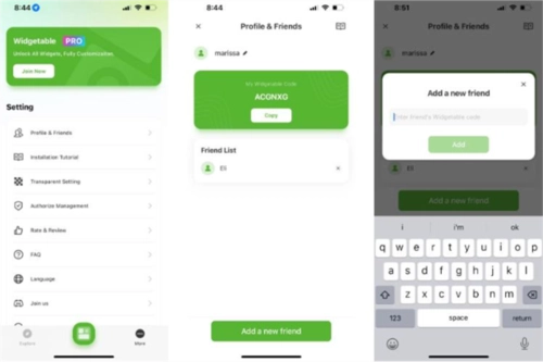 安装后,打开应用程序并点击位于底部菜单中的更多,然后点击菜单中的个人资料和好友。接下来,点击屏幕底部的添加新朋友并输入他们的代码。