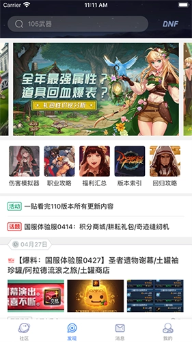 DNF版块每天有数万的讨论,在这里你可以与其他用户分享你的游戏趣闻,与DNF核心的玩家们一起交流互动,也可以在职业版块讨论职业心得,以及在池塘板块聊聊生活。除此外,还可以将新鲜热门的游戏栏目一网打尽!