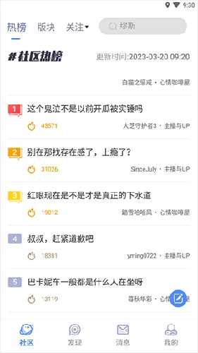 作为此次更新的一大特色,热榜也十分的实用,具体位置在社区栏目的左上角