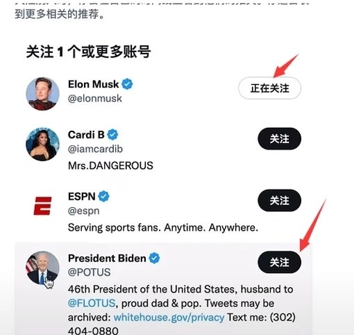 9、现在我们需要关注至少一个以上的用户,我们就来随便关注几个人吧,再点击“下一步”。