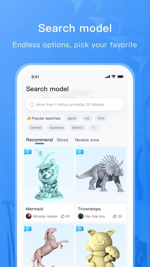 2、有预切片专区,一秒纵享丝滑打印。提供海量模型资源让网友搜自己喜欢。