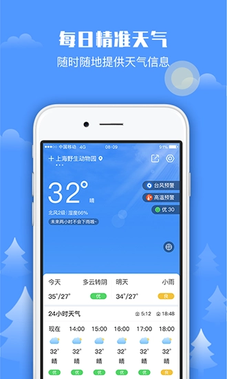 实时与24小时逐小时天气预报,温度变化冷暖早知道。