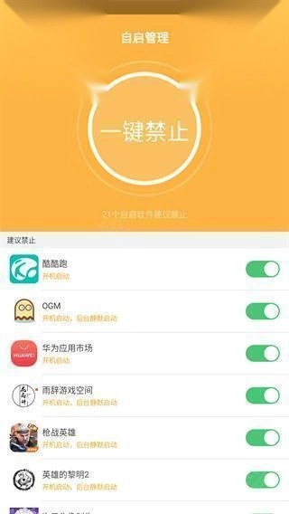 2、还提供手机优化功能,如管理开机启动项、屏蔽或隐藏广告等。