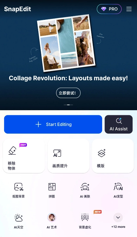 Snapedit堪称一款专业且功能全面的工具,为用户打造了一个丰富多元的功能与效果宝库。它能以极为自然的方式处理照片,巧妙消除各种违和感,与此同时,还为用户免费提供素材与模板。借助这款软件,用户能够轻松完成目标消除、图像增强、AI卡通化、背景去除以及实现多种艺术效果等操作。不仅如此,该软件还支持实时预览、批量处理、智能修复等一系列实用功能,并且配备了多语言界面与教程辅助,对于热衷于修图编辑的朋友们而言,绝对不容错过!
