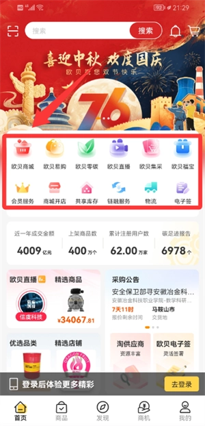 1. 打开应用进入首页后,能够根据自身需求选择进入商城。