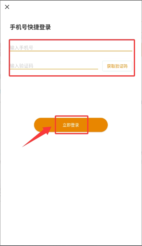 3、输入手机号及验证码完成立即登录操作。